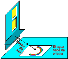 CÓMO CREAR UN ARCO IRIS![]() | 1- Llena un vaso de agua 2- Ponlo en una ventana cara al sol. 3- Pon un papel blanco en el suelo, de manera que el sol brille a través del cristal y sobre el papel 4- Aparecerá un arco iris en el papel. |