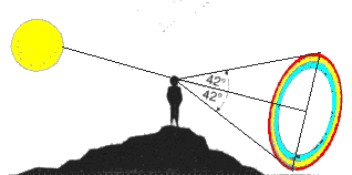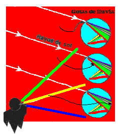 Cuanto más alto está el sol, más bajo es el arco iris. Cuanto más bajo está el sol, más alto es el arco iris.![]() EL TAMAÑO DE LAS GOTAS DE LLUVIA ES IMPORTANTE |