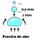 | Gotitas hasta 0,5 milímetros -llovizna- crean los colores más brillantes. Gotas pequeñas como las de la lluvia, crean un arco iris ancho y con colores flojos Gotas grandes se distorsionan con la presión del aire y casi no crean arco iris. | ![]() |