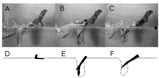 con una corriente de agua, corren por la superficie de ésta gracias a los lóbulos