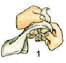 ![]() | 1.-Coge un pañuelo blanco y hazle un nudo en la punta. |